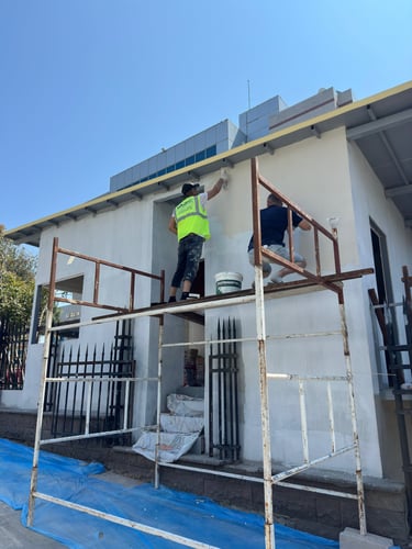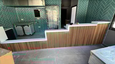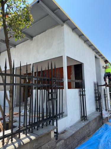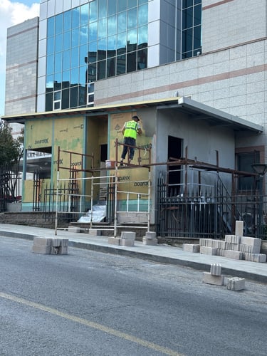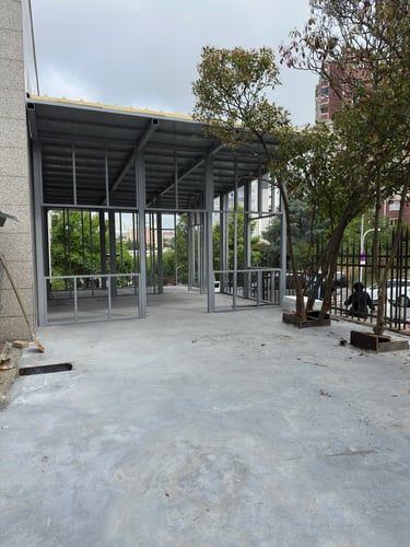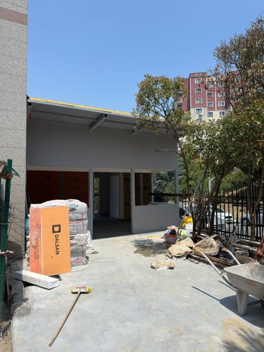 Ardından 2 katlı bir yapı inşa ettik: alt kat depo, üst kat mutfak ve servis alanı olarak tasarlandı. Temel ve zemin için C35 brüt beton kullanarak sağlam bir yapı oluşturduk. Üst yapı için boardex ile bölme sistemlerini kurduk, dış ve iç boya ile seramik kaplamaları tamamlayarak projeyi toplam 118 m² alan olarak teslim ettik.